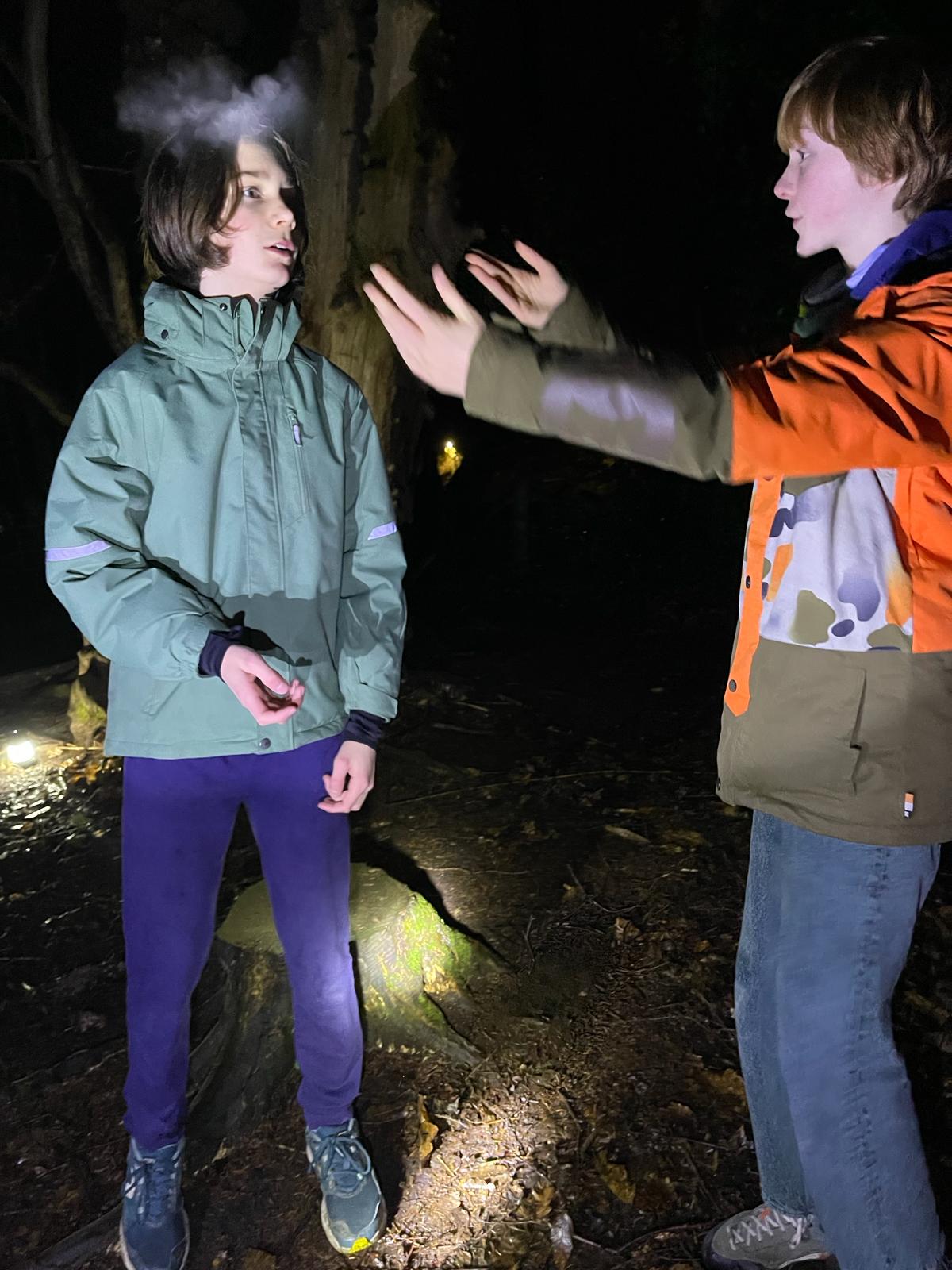Intermediate Group: as our members progress they will develop their theatre-making and devising skills and also explore how they can work with light and sound to add impact to performances. Intermediates who prefer not to perform in our shows take a lead in design and stage management. They all will learn how to make fire and how to use a knife, loppers and saw when working with wood.